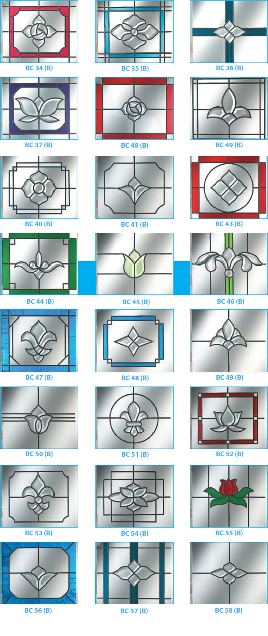 Whether you prefer simple linear designs, complex cluster designs or even coloured bevelled glass designs, each one can be complimneted by your desired level of obscured privacy glass.